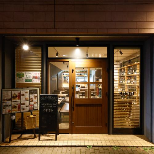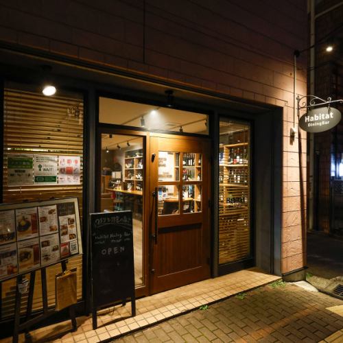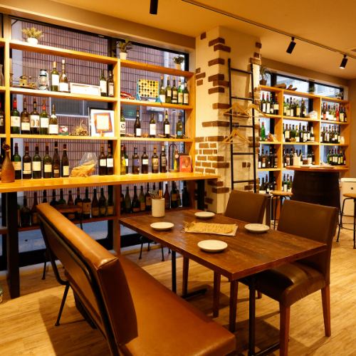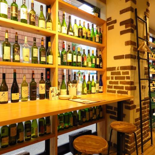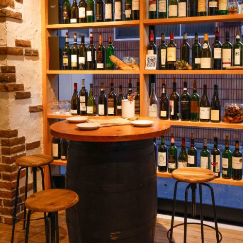 外観にはワインボトルが並び、それを眺めながら食べられるお席もご用意。ハイチェアでお洒落にお楽しみください。仕事帰りの同僚との飲み会にも![岡山/岡山市/表町/イタリアン/フレンチ/バル/ワイン/カクテル/肉/女子会/アヒージョ]