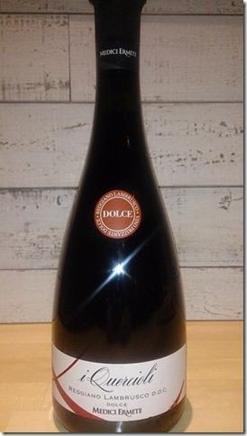【ボトルワイン赤】クエルチオーリ・レッジアーノ ランブルスコ・ドルチェ 甘口・微発泡(ITA)…干しイチジクや苺の豊かな香り。口に含むと苺の風味がいっぱいに広がり、程よい酸味が天然果実の甘みを引き締めているバランスのとれた甘口微発泡です。