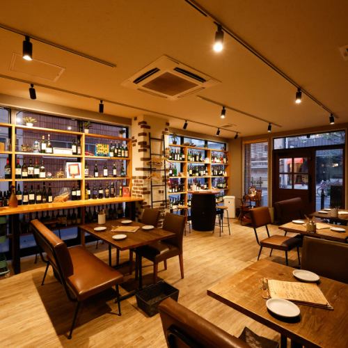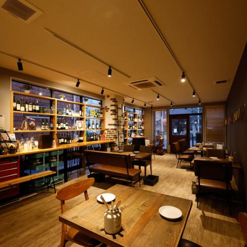 店内は広々とした雰囲気で、女子会や誕生日会、パーティーなどで使える仕様。レンガをあしらった内観は落ち着いており、大人の隠れ家としても利用可能。[岡山/岡山市/表町/イタリアン/フレンチ/バル/ワイン/カクテル/肉/女子会/アヒージョ]
